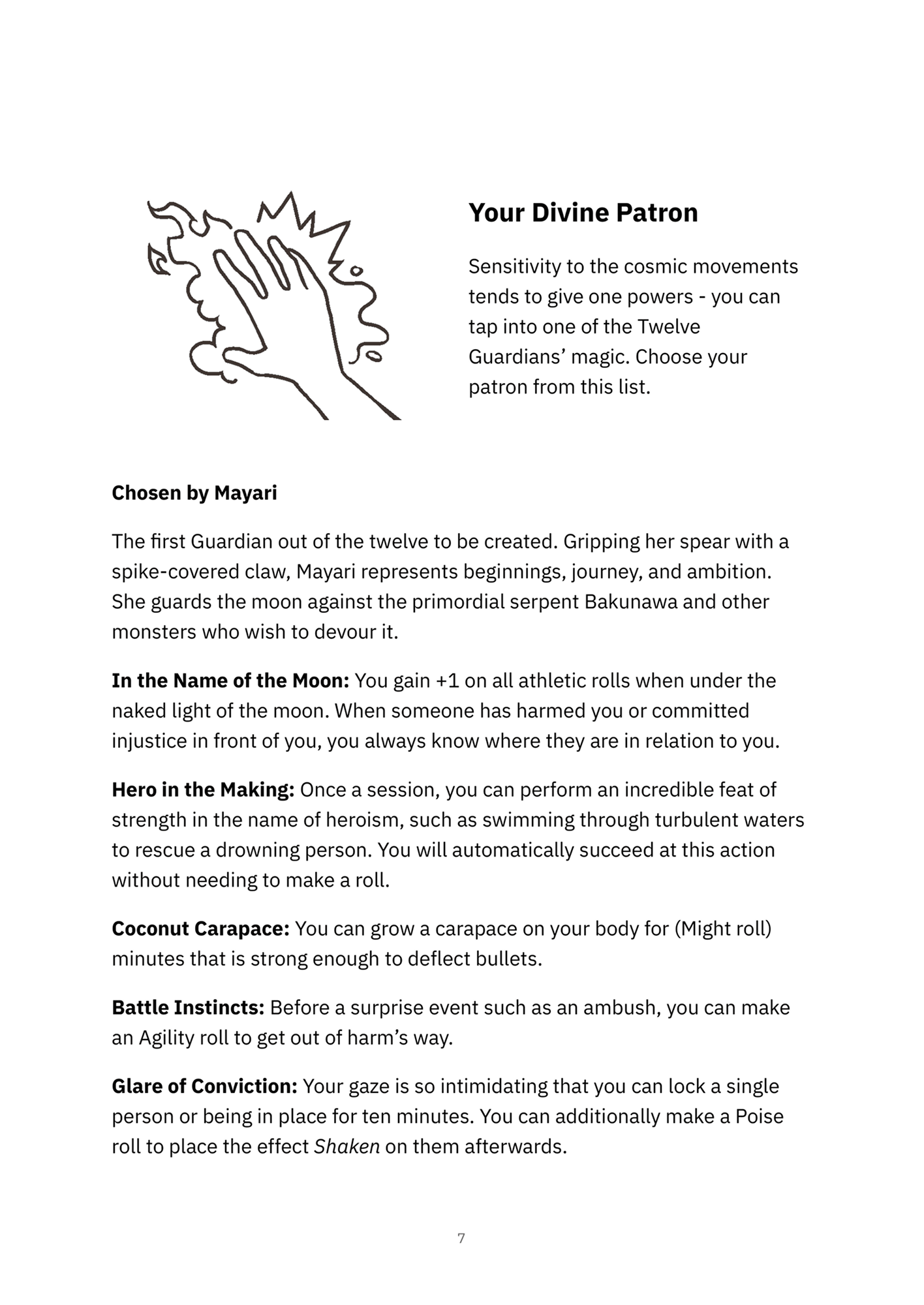 SWELLBLOOM KIDS is a ttrpg built around Filipino beliefs and folklore. Here, you play as the eponymous swellbloom kids, whose moods rise and fall due to cosmic El Niño and La Niña, respectively. Sensitive to the movements of the universe, they are gifted supernatural abilities thanks to The Twelve Guardians, deities watching over the different parts of the year and forming a zodiac of sorts.